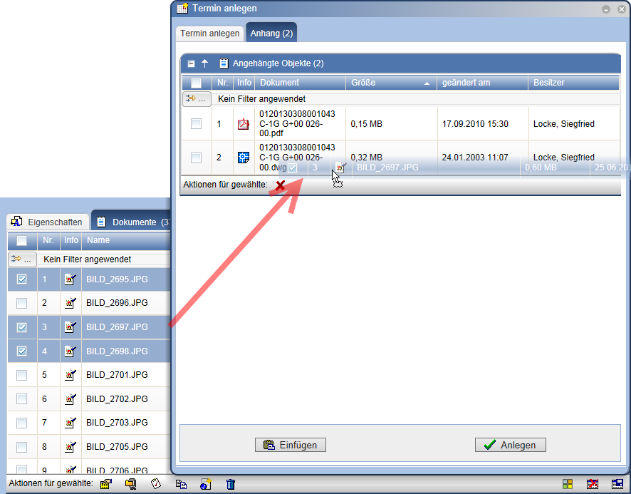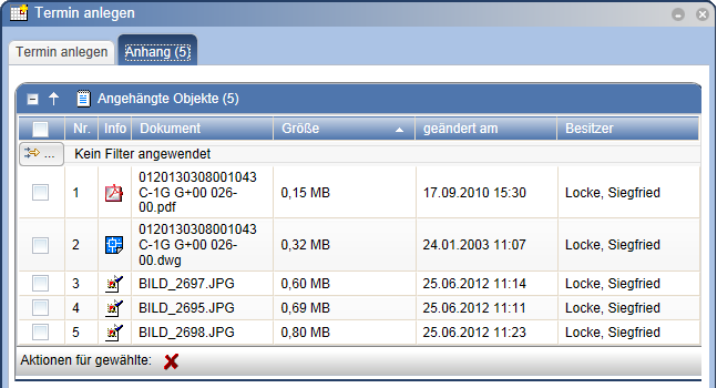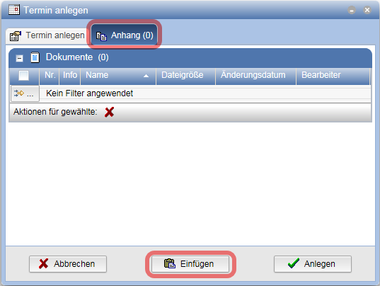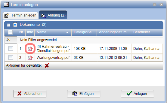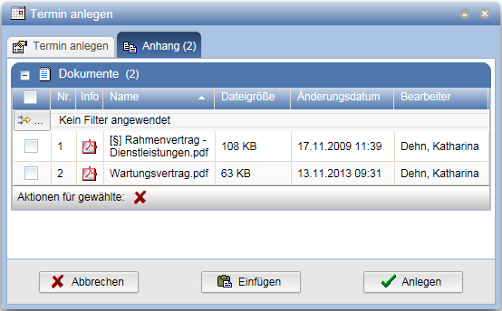 Die gewählten Dokumente erscheinen nun in der Reiterkarte Anhang.