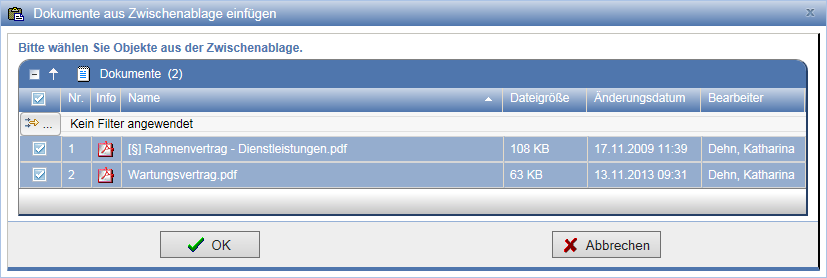 Markieren Sie die gewünschten Dokumente und bestätigen Sie Ihre Auswahl mit OK.