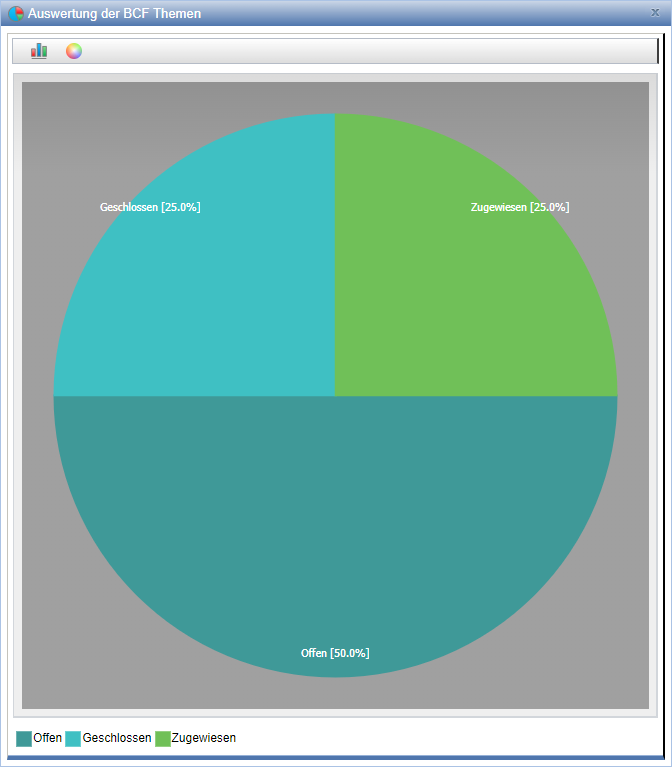 Die im Projekt vorhandenen BCF-Themen können inhaltlich anhand der Attribute analysiert und graphisch ausgewertet werden.