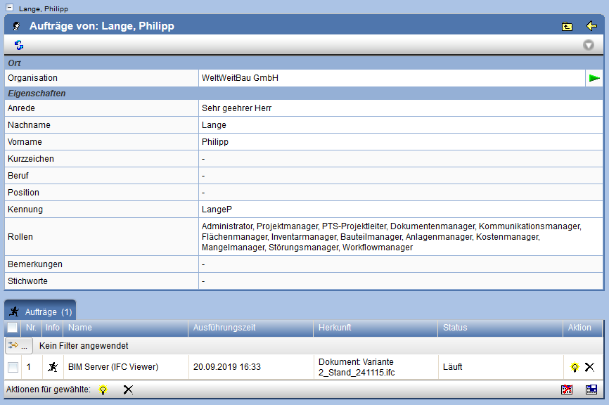 der BIM-Komponente dargestellt und der Auftrag automatisch