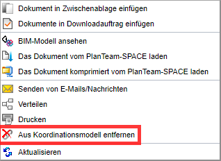 Das entfernen von Fachmodellen erfolgt über dessen Kontextmenü im Baum der BIM-Komponente.