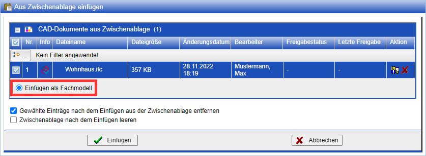 Sollte eine IFC-Datei noch nicht in die BIM-Komponente