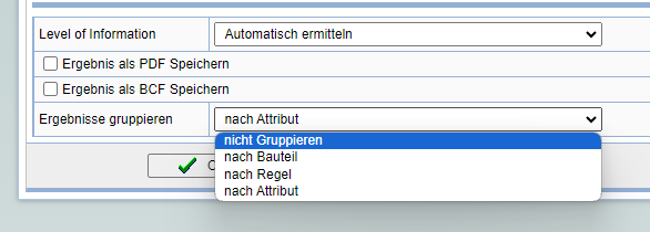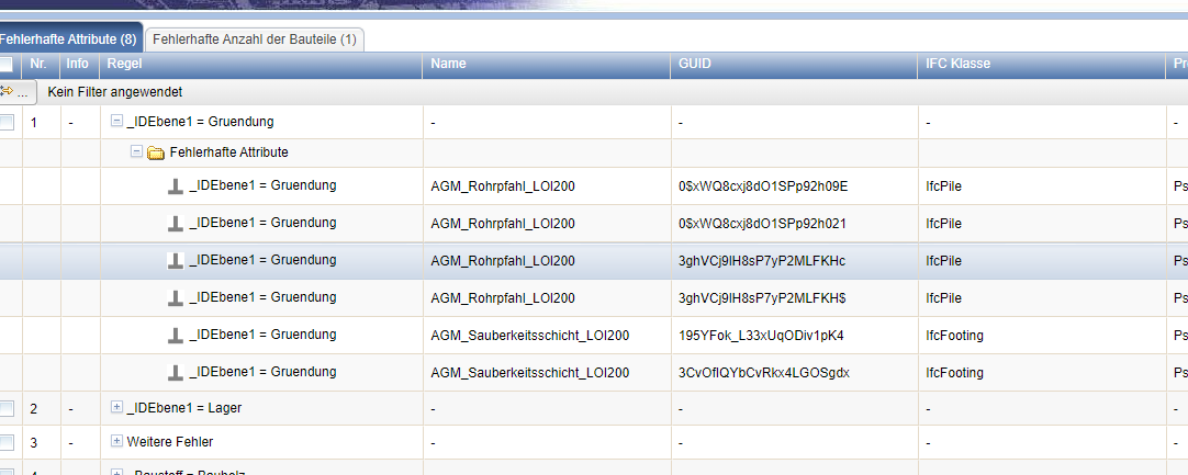 Dazu kann zur Gruppierung nach Bauteilen auch nach der angewandten Prüfregel oder nach dem Fehlerhaften Attribut gruppiert werden.