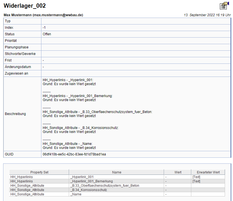 wird die Ursache in das Kommentarfeld der IFC-Datei eingetragen.