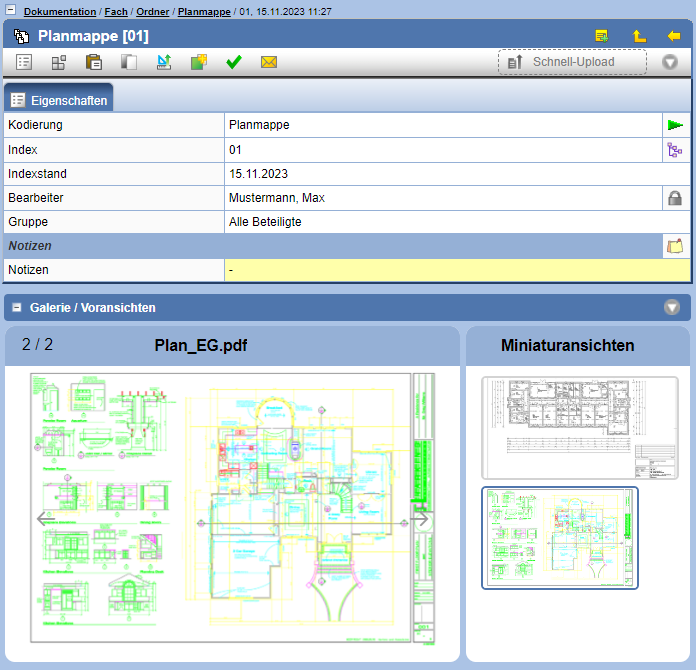Für Dokumente und CAD-Dokumente im PDF-Format steht im PlanTeam-SPACE eine Voransicht zur Verfügung, welche zusätzlich die Möglichkeit des stufenlosen Zoomens bietet.