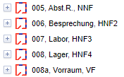 | Startet die Suche nach Räumen. (Die Suche nach Raumgruppen eines Gebäudes wird über das Kontextmenü (Rechtsklick) in der Baumstruktur aufgerufen.) | |