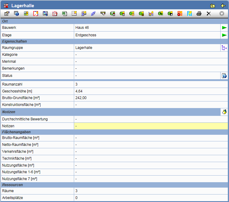 | Ändern der Flächen- und Arbeitsplatzangaben. | |