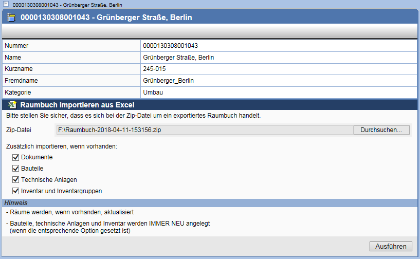 | Hinweis: | Bitte beachten Sie, dass nur Flächenmanager Raumbuch-Importe durchführen können. |