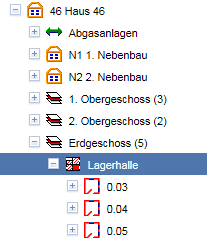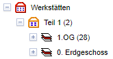 Flächenmanagement-Baum unterhalb der zugehörigen Etage mit