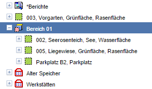 Liegenschaftsbereiche werden standardmäßig mit dem Icon im Flächenmanagement-Baum dargestellt.