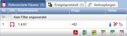 Diese Referenz wird tabellarisch auf der Eigenschaftenseite des kopierten Raumes dagestellt.