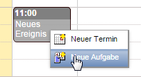 Eine weitere Möglichkeit ist, den gewünschten Zeitraum zu markieren. Es erscheint ein "Neues Ereignis". Mit Rechtsklick auf den markierten Bereich lässt sich auswählen, ob ein Termin oder eine Aufgabe erstellt werden soll.