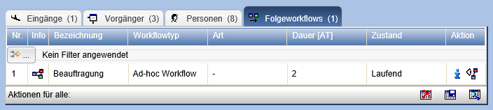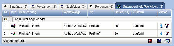 Sollten an der Station untergeordnete Workflows oder Folgeworkflows vorhanden sein, so werden diese ebenfalls in eigenen Tabs dargestellt.