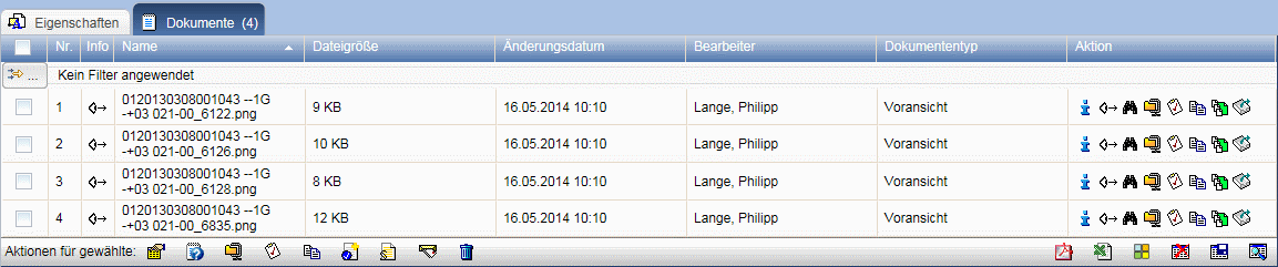 Miniaturasichten erhöhen die Übersichtlichkeit bei der Arbeit in der Dokumentation und anderen Komponenten. Zu diesem Zweck werden abhängig vom eingesetzten System automatisch Vorschaubilder für Dateien erzeugt und in den Eigenschaften-Seiten angezeigt.