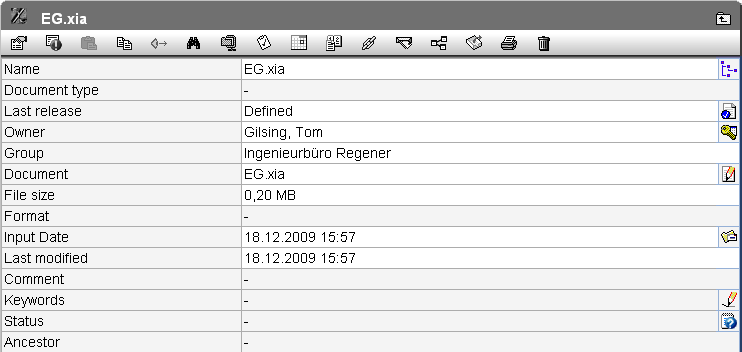 | Click on this button to display the registry data of the object. When and by whom was the object registered? When and by whom was the entry changed the last time? | |