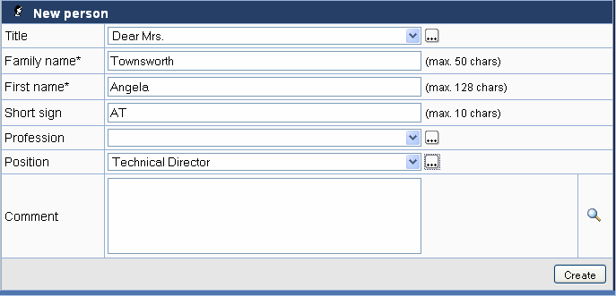 | Set keywords. By clicking on this icon you obtain a text box where you can set keywords. These keywords can be used as search criteria in a search for the person. | |