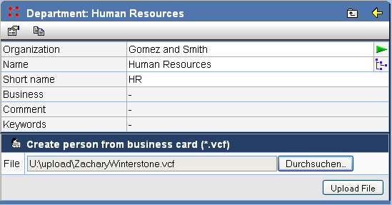 If you have a person's electronic business card, you can upload it and do not need to enter the data manually.