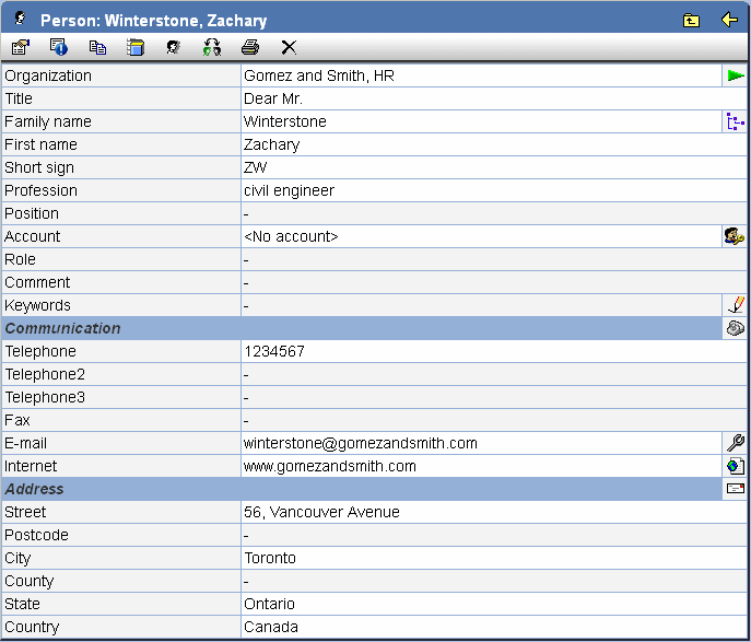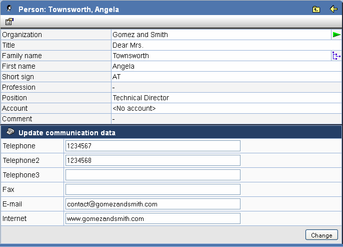 If you wish to change the contact data of a person, click on at the end of the line "communication". You can
