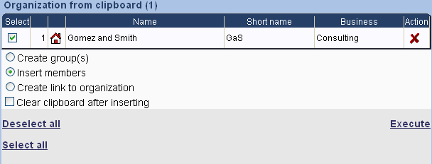 Adding members works similar to linking a group to an organization. When inserting the organization, choose add members.