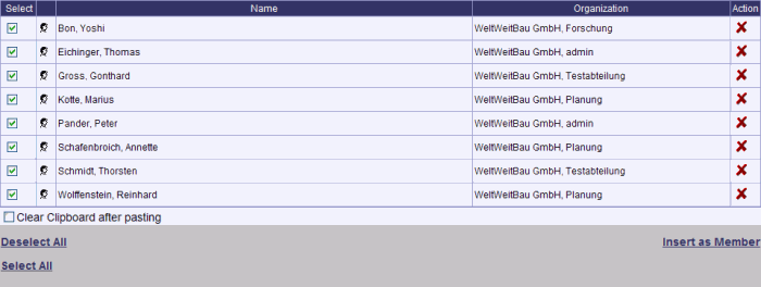 After executing the action, the persons contained in the organization/department are displayed. Choose which persons should be transfered into the group as members.