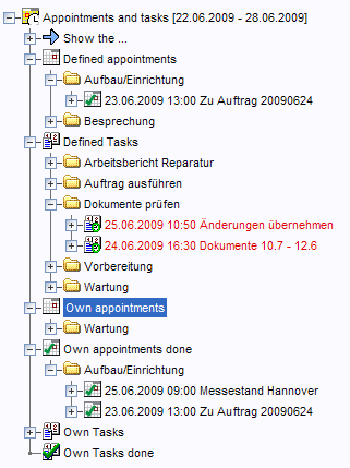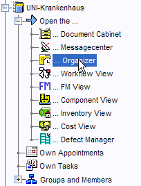 In the organizer tree, all tasks and appointments concerning the current user are displayed.